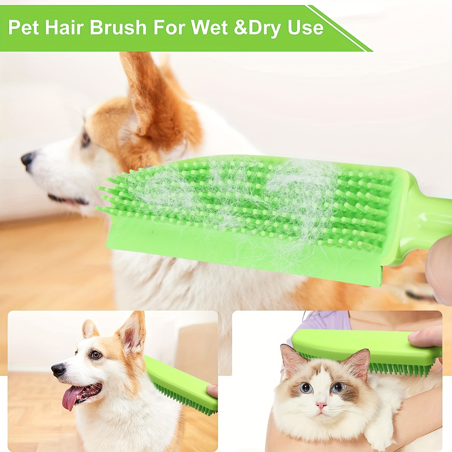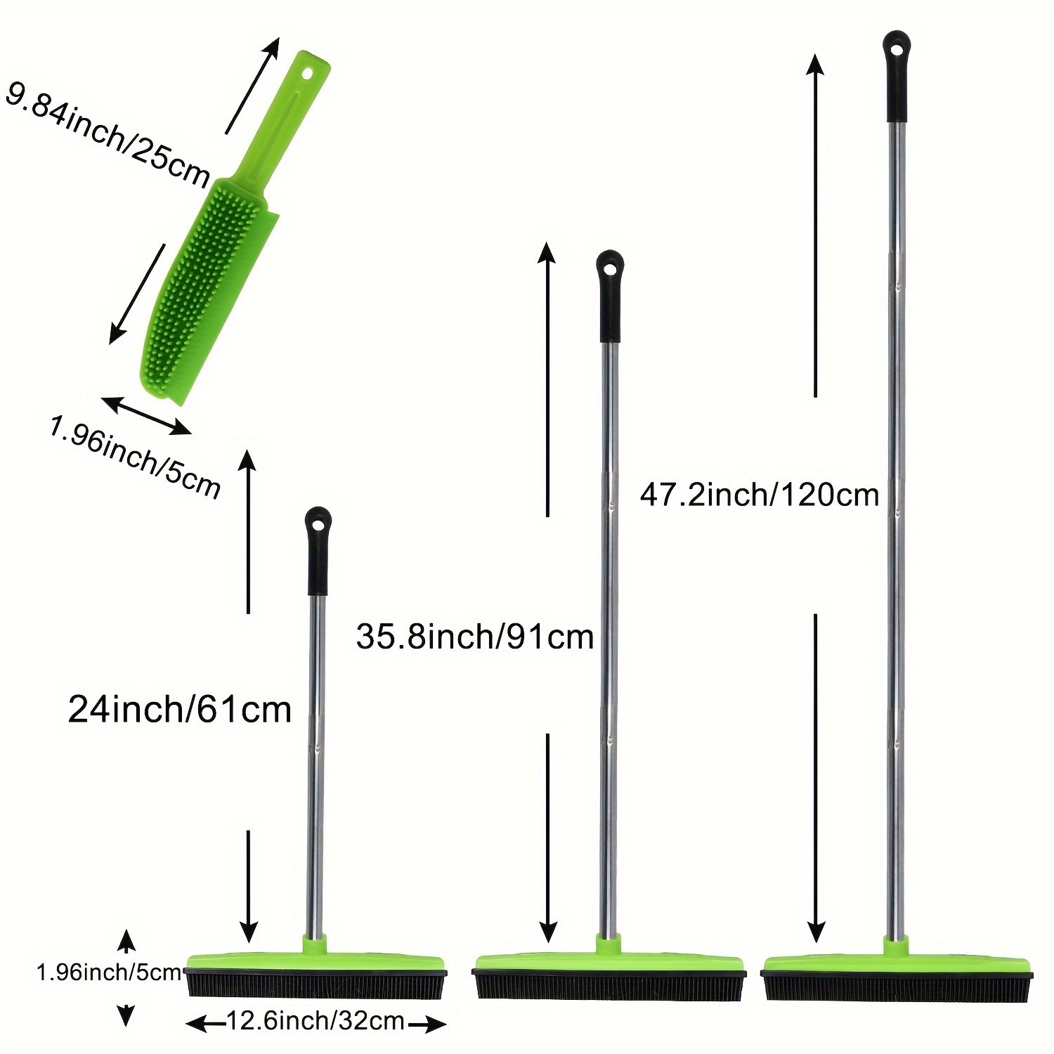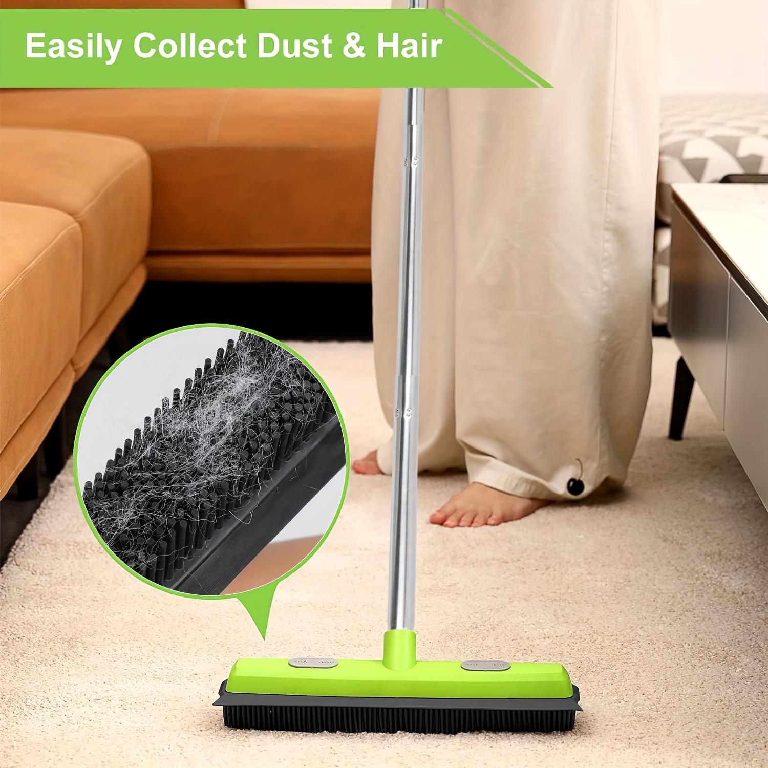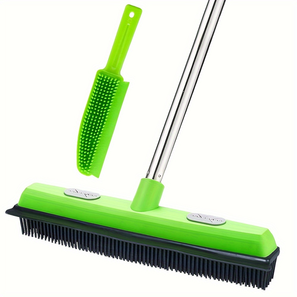 57" Long Handle Pet Hair Removal Broom with Squeegee – Green Rubber Brush for