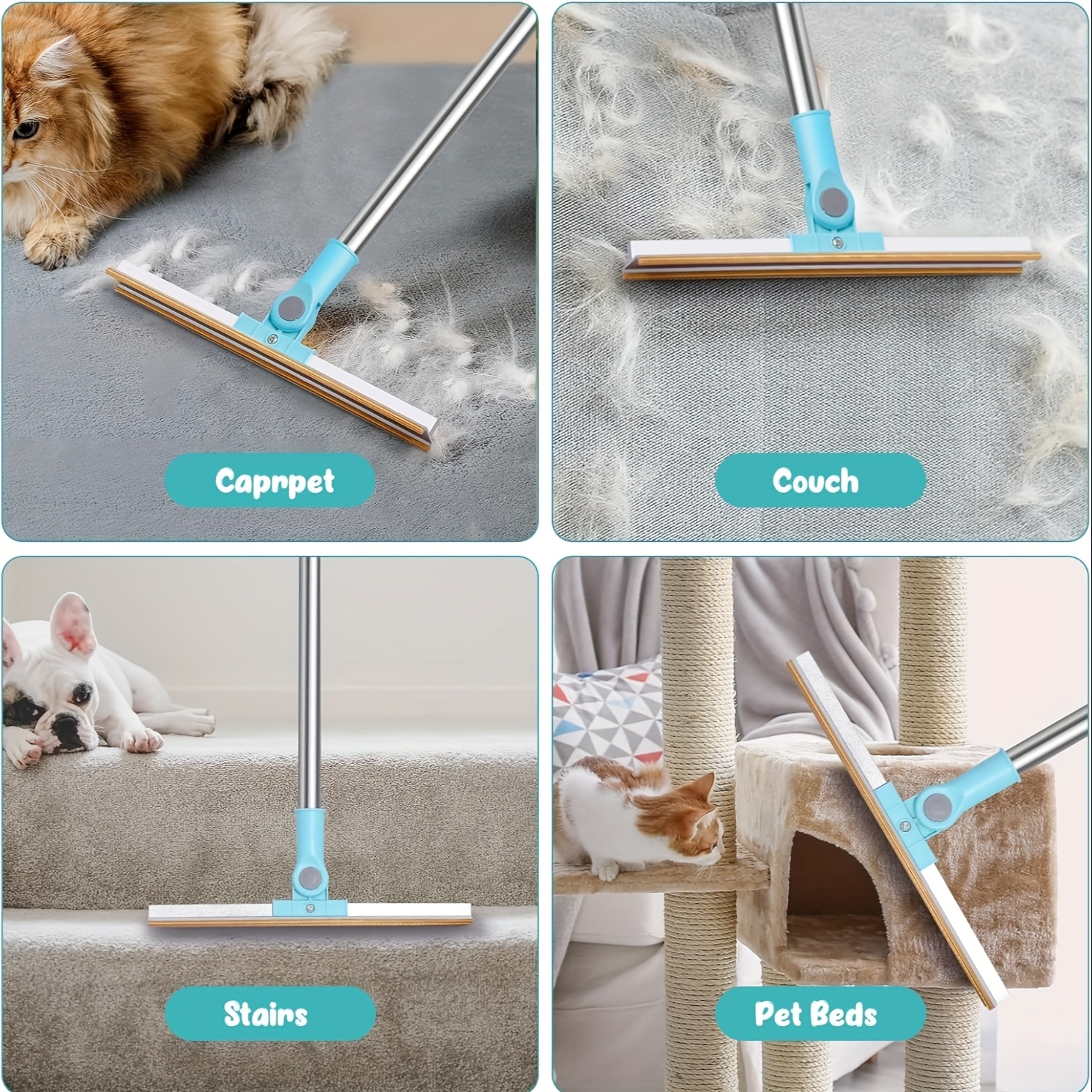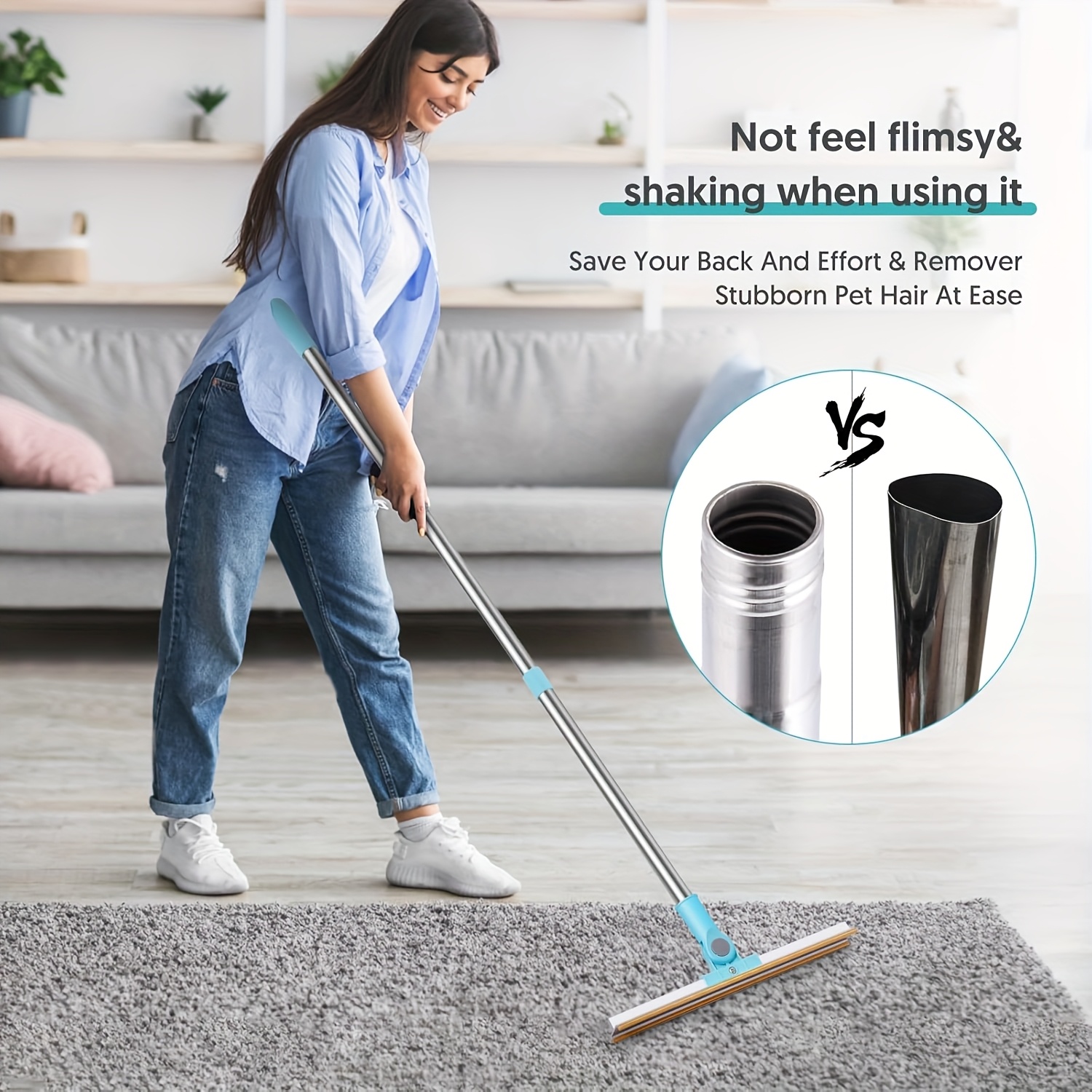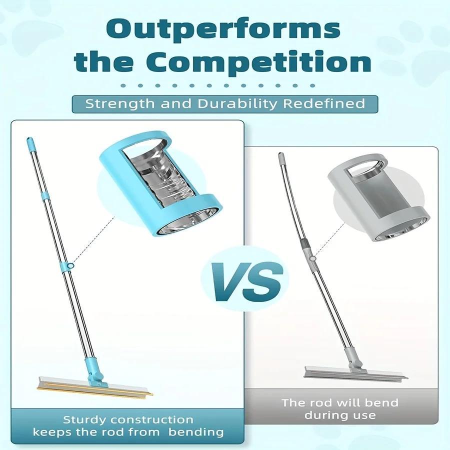 Adjustable Carpet Rake for Pet Hair Removal - Long Handle Broom with Metal Brush